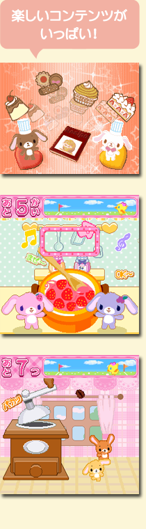 ・SoftBank 3GC FlashLite2.0の動作する端末 ※対応端末の詳細は『シュガバニとあそぼ』サイトにてご確認いただけます。 |